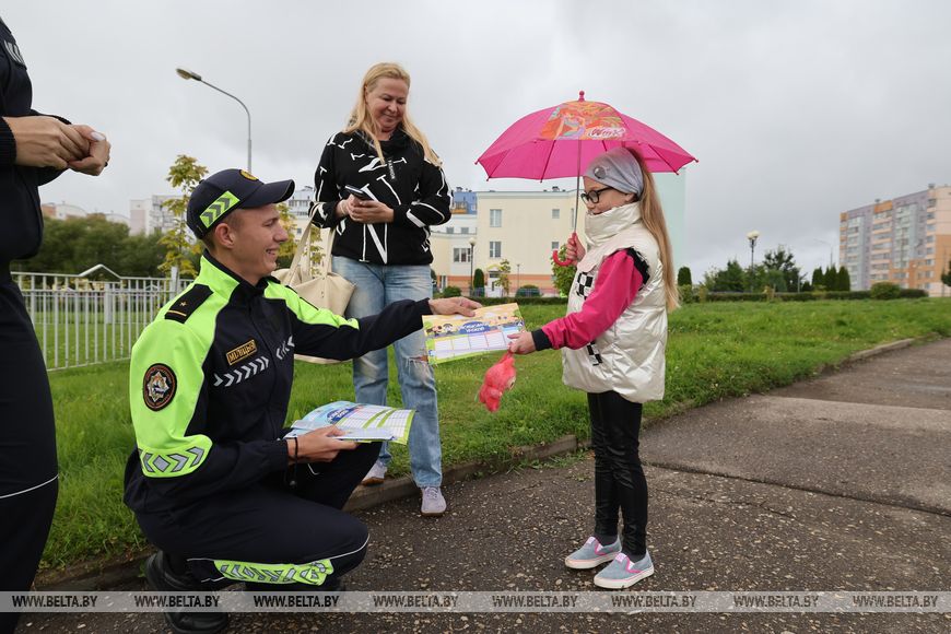 26 августа, Витебск /Корр. БЕЛТА/. В Беларуси с 25 августа по 5 сентября проходит специальное комплексное мероприятие "Внимание - дети!". В эти дни предусматривается обязательное движение транспортных средств в светлое время суток с включенным ближним светом фар или дневными ходовыми огнями. 26 августа сотрудники ГАИ УВД Витебского облисполкома вблизи школ и в местах интенсивного движения детей-пешеходов организовали рейд, во время которого провели профилактическую работу с подростками и вручили им памятные подарки.-0-