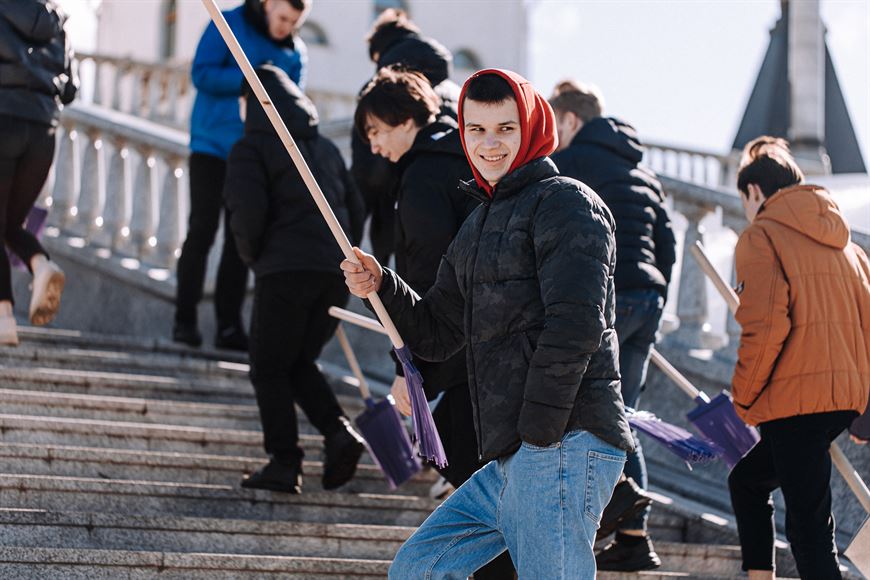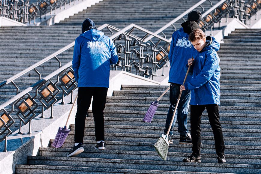 "На благоустройстве храма-памятника трудились волонтеры Военной академии и Минского государственного политехнического колледжа - филиала БНТУ. Парни и девушки занимались уборкой парадного входа храма, перенесли мебель и помогли подготовить к летнему сезону шатер для отдыха прихожан", - рассказала Александра Гончарова.