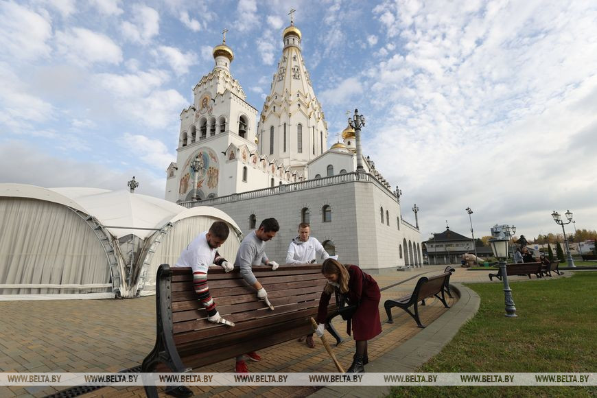 Традиционно программа составлена с учетом предложенных молодежью полезных инициатив. Так, во время трудовой акции "Нас объединяет история и вера" волонтеры благоустроили братскую могилу на Восточном кладбище, где покоятся останки 190 воинов, павших за освобождение Минска в 1941-1945 годах. По окончании работ молодежь зажгла лампады, почтила память героев-освободителей минутой молчания, возложила к мемориалу цветы. Волонтерские работы также развернулись и на территории Национального мемориального комплекса "Храм-памятник в честь Всех Святых и в память о жертвах, спасению Отечества нашего послуживших".