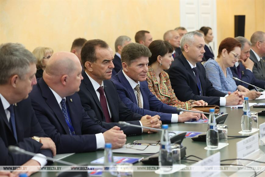 Всего подписано 7 документов. План мероприятий по развитию сотрудничества между Гродненскими областным исполнительным комитетом и администрацией Томской области на 2023-2025 годы, протокол между Витебским областным исполнительным комитетом и правительством Саратовской области об утверждении дорожной карты на 2022-2025 годы по реализации соглашения между Витебским областным исполнительным комитетом и правительством Саратовской области в торгово-экономической, научно-технической, культурной и иных сферах от 30 июня 2017 года, протокол о намерениях сотрудничества между Витебским областным исполнительным комитетом и Советом министров Республики Крым РФ, соглашение о сотрудничестве между Минским областным Советом депутатов и Мурманской областной Думой, соглашение о сотрудничестве между ОАО "Минский тракторный завод" и администрацией Краснодарского края, соглашение о сотрудничестве между ОАО "Строительный трест №12" Управляющая компания "Стройтрест-Холдинг", ООО "БелинжинирингстройИнвест".