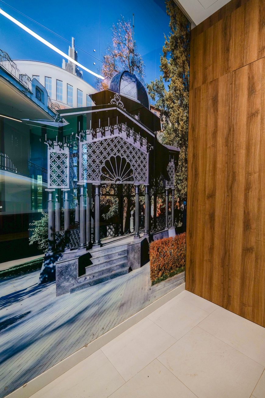 Лобби площадью 72 м2 имеет эксклюзивный дизайн, который погружает в образ названия жилого дома.