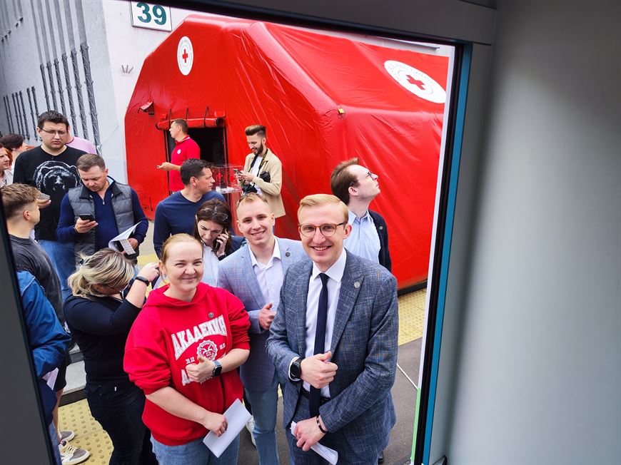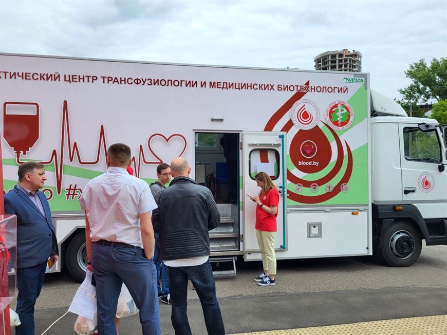 Акцию по безвозмездной сдаче крови организовали во Всемирный день донора. Сдать кровь мог любой желающий, кто не имел противопоказаний. Первыми посетителями пункта стали министр здравоохранения Дмитрий Пиневич, генеральный секретарь Белорусского Красного Креста Дмитрий Шевцов и директор РНПЦ трансфузиологии и медицинских биотехнологий Федор Карпенко. К ним присоединились представители министерств лесного хозяйства, архитектуры и строительства, юстиции, экономики, спорта и туризма, парламента, РНПЦ детской хирургии, МНПЦ хирургии, трансплантологии и гематологии и др.