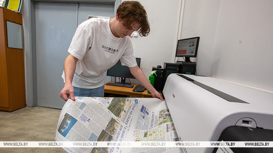 - До открытия киосков издания должны быть доставлены даже в самые отдаленные уголки страны. Здесь все работает по цепочке: редакция поздно сдает номер - мы задерживаемся с печатью тиража, соответственно, газета с опозданием поступит на почту и в продажу. Такого нельзя допустить, ведь люди с утра ждут свежих новостей, - поясняет Дмитрий Реут, открывая дверь производственно-издательского центра, в котором вовсю кипит работа: телефон звонит не переставая, огромный принтер выдает газету по спускам, специалисты спешат от компьютеров к столам за распечатками и обратно.