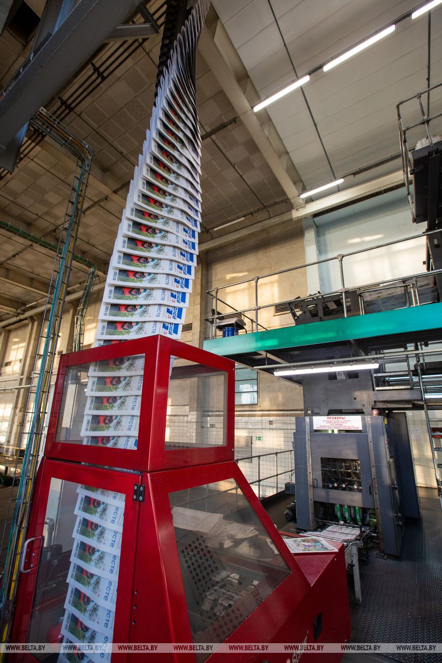 Когда на печатной машине доведены все настройки, она запускается. Цех наполняется шумом работающих барабанов и ножей, а по ленте и вверх по подъемнику, словно рекой, текут готовые свежие газеты. Производительность станка позволяет печатать несколько изданий одновременно, а в час - до 75 тыс. экземпляров. Операторы из общего потока периодически берут экземпляр, чтобы проверить, не сбились ли настройки. Далее издание по ленте отправляется в накопитель, где упаковывается в пачки по 60 штук, и они следуют на сортировку. Здесь тираж складируется на поддоны и распределяется по регионам - в киоски, магазины, почтовые отделения, чтобы вовремя попасть к читателям.