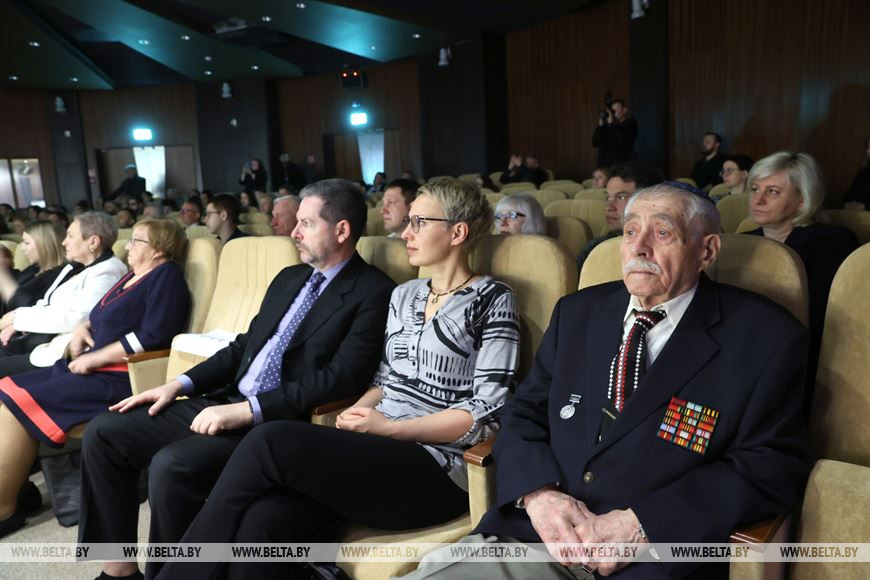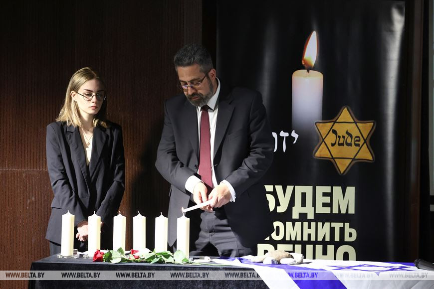 18 апреля, Минск /Корр. БЕЛТА/. В Белорусском государственном музее истории Великой Отечественной войны прошла церемония, посвященная Дню памяти катастрофы и героизма европейского еврейства. Мероприятие организовано посольством Государства Израиль в Республике Беларусь и Израильским культурным центром Натив при посольстве Государства Израиль в Республике Беларусь совместно с Белорусским государственным музеем истории Великой Отечественной войны. В ходе церемонии временный поверенный Государства Израиль в Беларуси Цви Миркин вручил диплом и медаль Праведников народов мира потомкам белорусских граждан, спасавших евреев во время войны. В рамках мероприятия представлена уникальная выставка документальных материалов "Еврейское сопротивление нацизму в годы холокоста" из фондов Национального архива Республики Беларусь.-0-