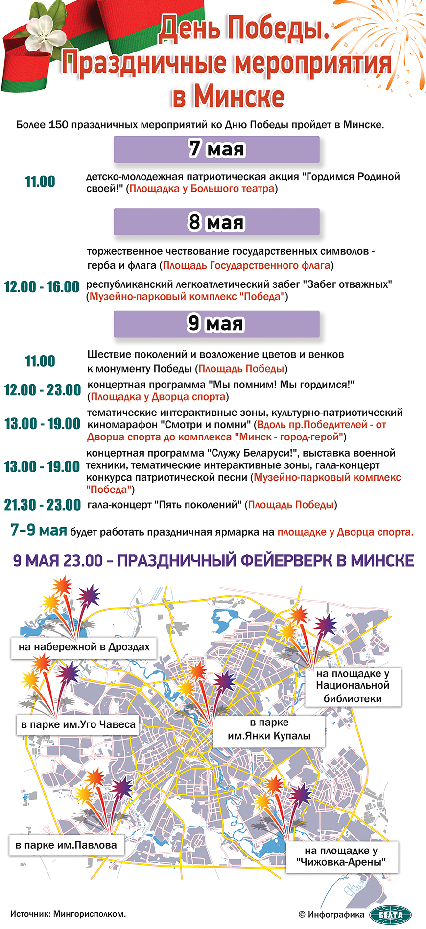 Для комфортного отдыха и исключения негативных последствий рекомендуется приходить к местам проведения мероприятий заблаговременно. Лица, находящегося в состоянии опьянения, допущены на места не будут. Кроме того, ГАИ советует заранее позаботиться, где они припаркуют автомобиль, так как на некоторых участках столицы организация дорожного движения будет изменена.