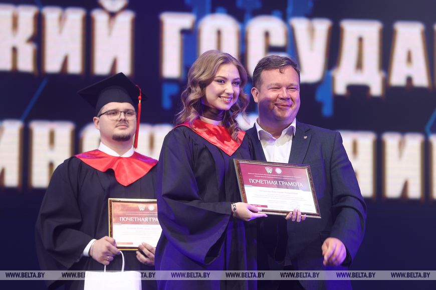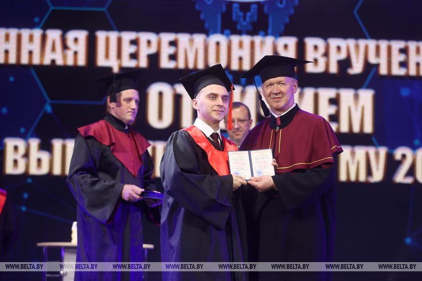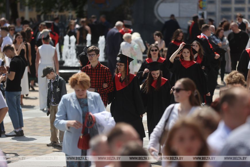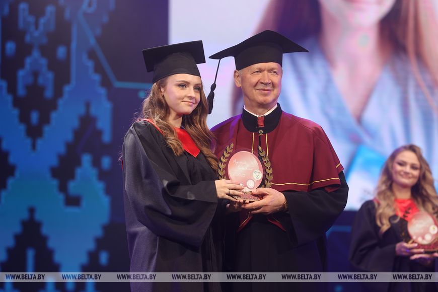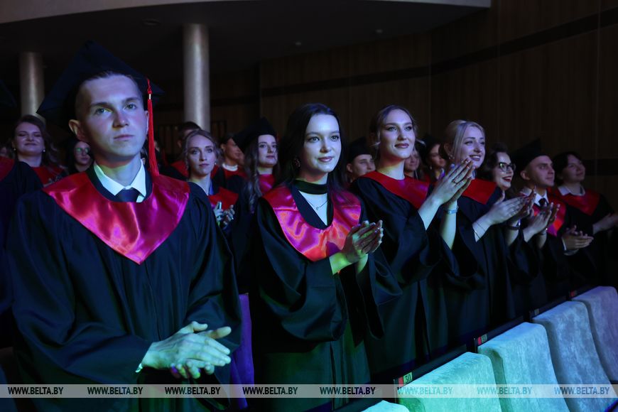 Выпускник лечфака Артем Копытич, который в 2022 году завоевал звание лучшего студента СНГ, а в 2023-м стал лучшим молодым ученым СНГ, рассказал: "Впервые придя в университет, я хотел стать кардиологом. Но случилось так, что я закончил вуз по специальности "травматолог-ортопед". В свои 12 лет я пережил тяжелую травму руки, впервые встретился с травматологами, и с того времени что-то в душе появилось, захотелось стать именно врачом, приносить пользу людям. Работать буду в Минской областной больнице по специальности "врач - травматолог-ортопед". Я очень рад и очень благодарен университету за то, что мне дали возможность показать себя не только на уровне университета, но и на международной арене".По словам выпускницы лечебного факультета Натальи Третьяковой, в этот день ее переполняют смешанные эмоции. "Я очень волнуюсь, даже не знаю почему. Я в предвкушении чего-то нового, потому что впереди новый этап, меня ждет новый коллектив, я распределена хирургом в Гомельскую БСМП, очень довольна. Очень грустно из-за того, что приходится прощаться и расставаться. Действительно, шесть лет пролетели как один день. Кажется, недавно поступила, а вот уже стою здесь, чтобы получить диплом, - сказала выпускница. - Университет дал мне бесконечное множество друзей во всех уголках страны, потому что я активно участвовала в студотрядах, в том числе ездила в Российскую Федерацию. Самое главное - вуз дал мне уверенность в себе".