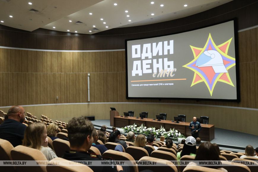 Семинар стартовал в Образовательном центре безопасности Министерства по чрезвычайным ситуациям. Там нас зарегистрировали, ознакомили с техникой безопасности и заверили, что здесь мы в полной безопасности. Ведь кого вызывают при ЧС? Спасателей! А тут их сегодня особенно много.