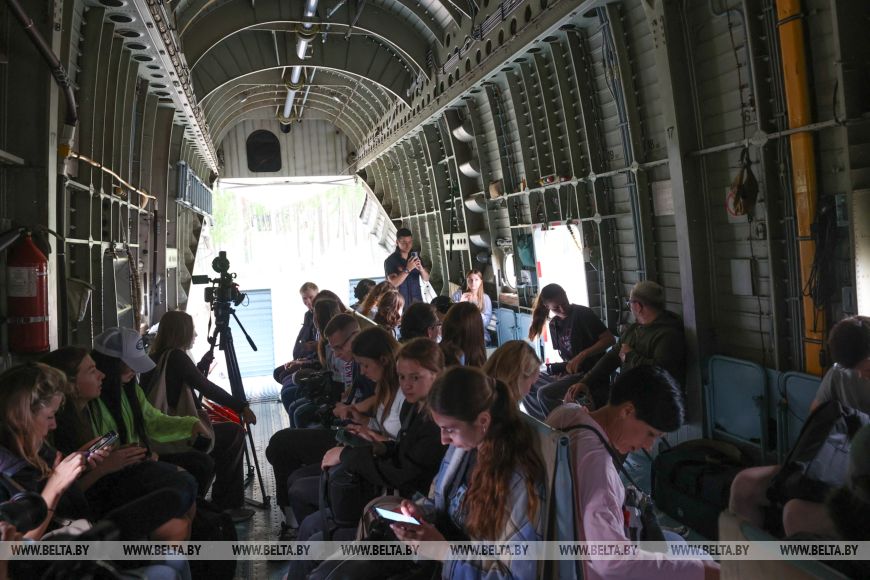 Перед погрузкой всех проинструктировали: "Красное не трогать, желтое не трогать, не пить, не курить и не заниматься неблаговидными вещами". Все просто, а главное - разрешили улыбаться, смотреть в иллюминатор и получать удовольствие.Проезжая мимо вертолета, его масштабом впечатлены мы не были. Однако, находясь возле него, ощутили: он огромный, как из каких-то боевиков. Журналистов запускали в вертолет через заднюю дверь, чтобы почувствовать масштаб и уровень "зверя". Такое прозвище подтвердилось и издаваемым шумом.
