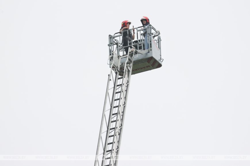 Но, конечно, больше всего поразил автоподъемник коленчатый, который поднял нас на высоту 50 м, дав возможность полюбоваться прекрасными видами с высоты птичьего полета. Такая техника помогает тушить пожары на высоких этажах или спасать кого-то с высоты.