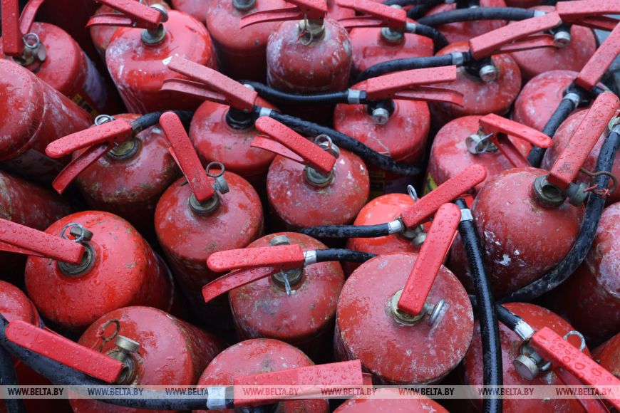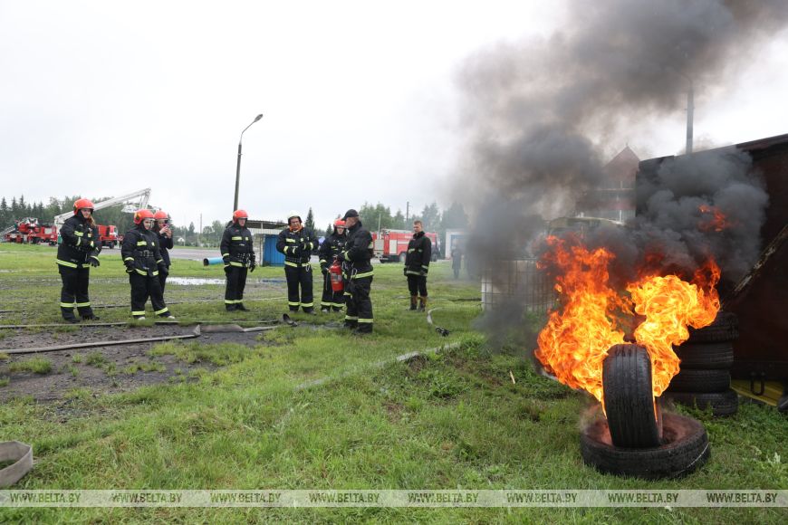 Тут нас поджидали горящие покрышки. Однако перед тем как бежать их спасать, нужно было обмундироваться - надеть боевую одежду. Для пожарных установлен норматив в 18 секунд, у нас на это ушло гораздо больше времени. Комбинезон, куртка, перчатки с крагами, каска - кажется, можно приступать к тушению, но главное - не забыть закрыть забрало. Технику безопасности мы тоже не забыли.Все, собравшись, идут тушить. Опытный пожарный сначала провел инструктаж и рассказал о видах огнетушителей. Кстати, они делятся по классам: А - для горящих твердых веществ, B - для горящих жидкостей и другие. Выдернули чеку, крепко взялись за рычаг и тушим. Впечатлений - море, но самое интересное впереди.