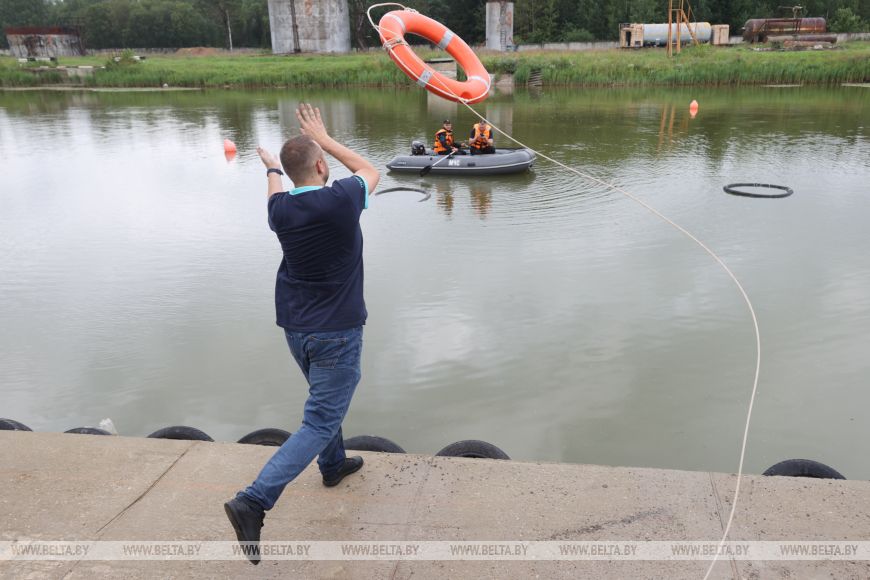 Представляя по дороге на семинар, как спасают утопающих, мы рисовали себе картину спасателей из Малибу, которые прыгают в красных купальниках за тонущими. Оказалось все намного безопаснее и продуманнее. Для спасения сотрудники МЧС используют разные средства. Одно из них - спасательный конец Александрова. Это не тонущий поплавок на 30-метровой веревке, который бросается в водоем, чтобы за него ухватился тонущий. Ну и, конечно, в ход идет спасательный круг. Как рассказали, он весит от 4 до 7 кг. К сожалению, норматив мы не сдали, но хотя бы попробовали.