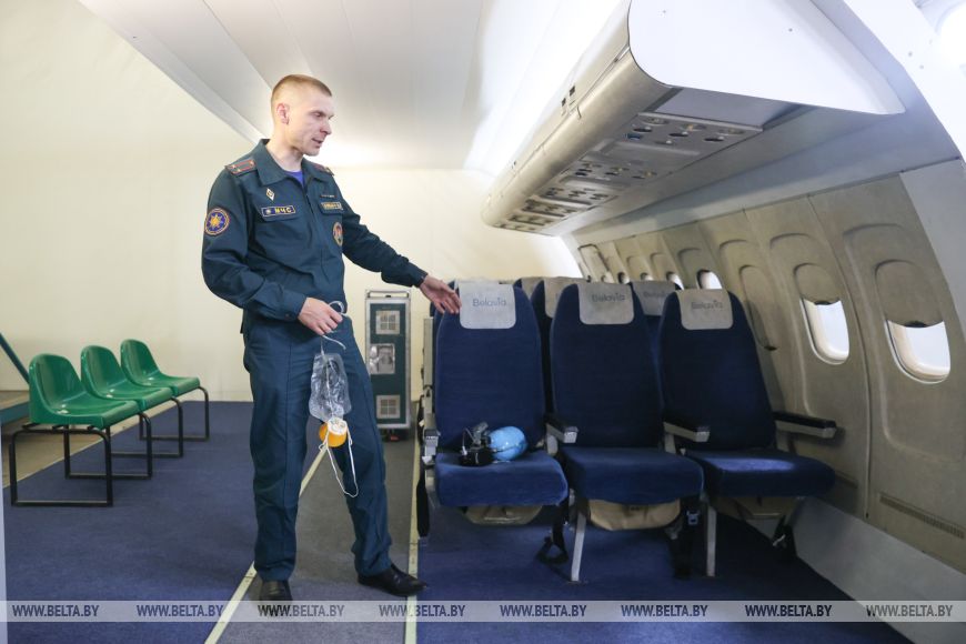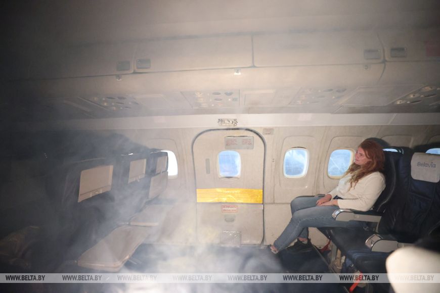 Ну и, конечно, мы пережили чрезвычайную ситуацию в самолете. Макет, который раньше был настоящим самолетом и перевозил людей, сегодня продолжает свою жизнь в обучении. Сев на места как настоящие пассажиры, мы узнали больше об оснащенности самолетов: аптечки, огнетушители и прочее. А потом в один момент началось: дым, вспышки света и крики. Все это сильно давило на психику, а затем самолет наклонился на 30 градусов. В таких условиях мы аккуратно, как самая организованная группа на свете, попытались выйти. Тайминг, за который пассажиры должны успеть спастись, - 90 секунд. В срок мы не уложились, но все же выбрались.Как утащить 15 кг на корточках, или Дымокамера
