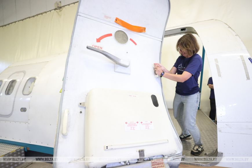 Продолжился наш квест в учебно-тренировочном комплексе по подготовке кабинных и летных экипажей. Здесь нас познакомили с тем, как обучают бортпроводников. Мы попробовали открыть и закрыть двери самолета - это на самом деле довольно сложная задача. Узнали, почему в ряду из трех кресел предусмотрено четыре кислородных мешка - один из них предназначен для детей или для бортпроводников.