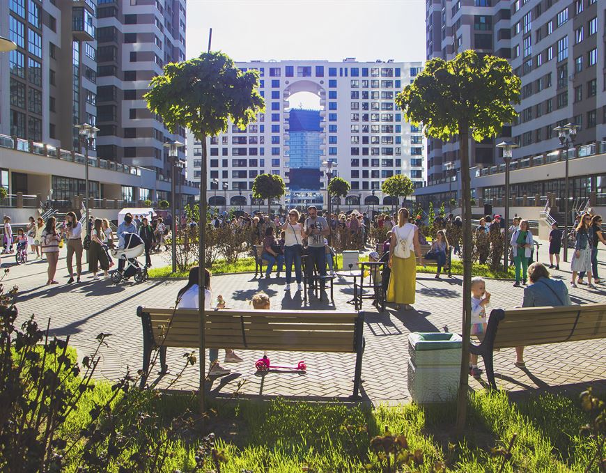 Одновременно строятся и общественные объекты – школы, детские сады, поликлиники и медицинские центры, спортивные сооружения. Принцип "город в городе" подразумевает, что все необходимое будет буквально в шаговой доступности.