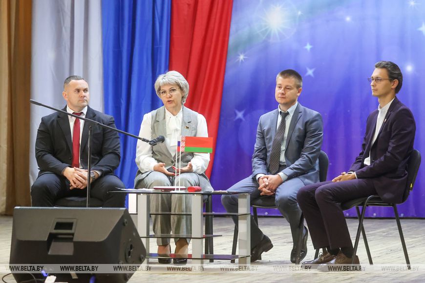 Сегодня программа продолжилась в Хойниках. Песни, хореографические постановки и произведения о главном звучали в районном доме культуры. Актуальные вопросы общей исторической правды, союзного настоящего и будущего молодые люди обсудили на диалоговой площадке.