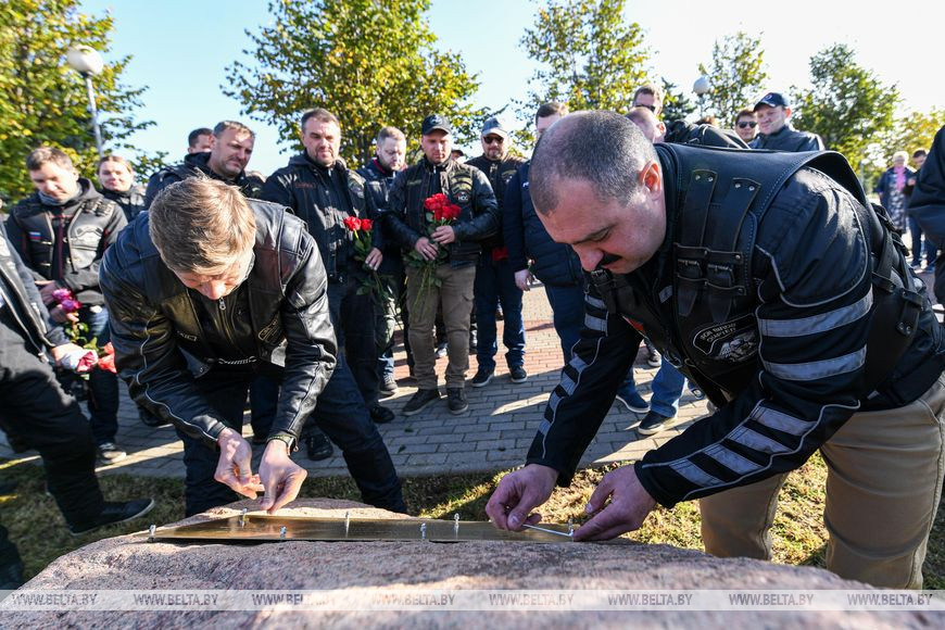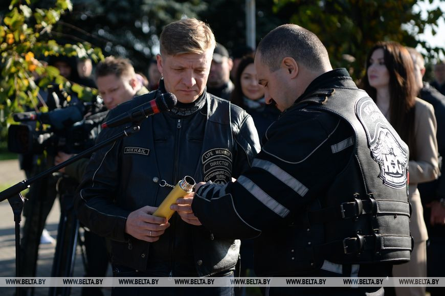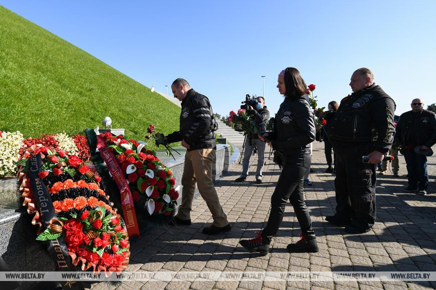 Члены мотоклуба H.O.G. из разных городов Беларуси и России побывали в мемориальном комплексе "Брестская крепость - герой", где возложили венки и цветы к Вечному огню и минутой молчания почтили память погибших. Посетили Николаевщинский дом-интернат для престарелых и инвалидов и детскую деревню "Истоки". Завершилось мероприятие посещением "Кургана Славы", где состоялась церемония закладки капсул с землей с памятных мест и посланием наследникам Великой Победы, а также возложением цветов к мемориалу.-0-