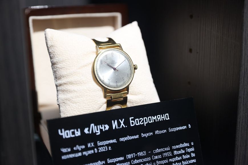 В музее, принадлежащем Минскому часовому заводу, уже есть одна подобная реликвия - наручные часы "Луч" командующего 1-м Прибалтийским фронтом И.Х. Баграмяна. Теперь есть и второй такой экземпляр, который принадлежал в свое время Георгию Федоровичу Захарову - советскому военачальнику, командующему 2-м Белорусским фронтом во время операции "Багратион".