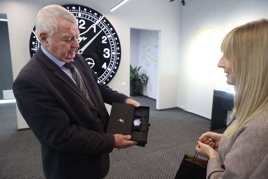 Минский часовой завод в ответ преподнес Михаилу Юрьевичу классические часы в крупном корпусе.