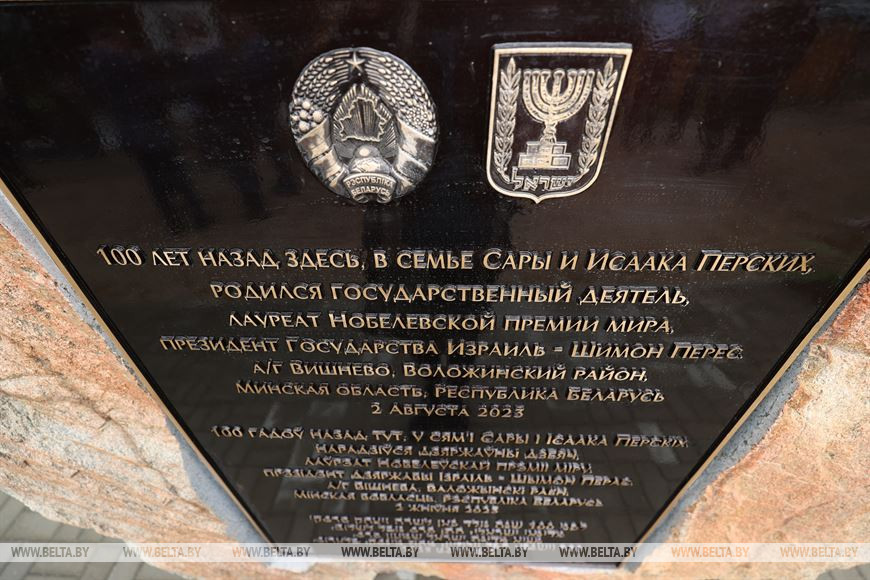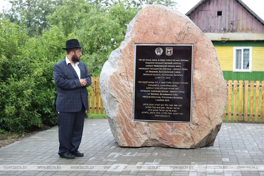 "Сегодня мы отмечаем 100-летие великого земляка, великого политика и сына белорусской земли Шимона Переса. Он вдалеке от родины всегда отстаивал интересы суверенитета и народа. Этот политик совместно с нашим Президентом Александром Лукашенко сделал немало для нашей страны. Шимон Перес прошел все ступени в своем становлении как политик, стал нобелевский лауреатом. Поэтому я признателен общественности, бизнесу, областному исполнительному комитету и Воложинскому райисполкому за то, что на родине политика появился памятный знак", - отметил заместитель председателя Минского облисполкома Иван Маркевич.