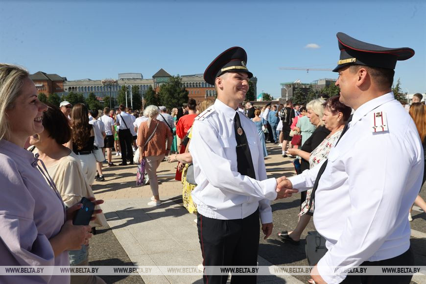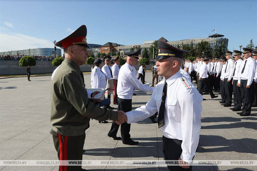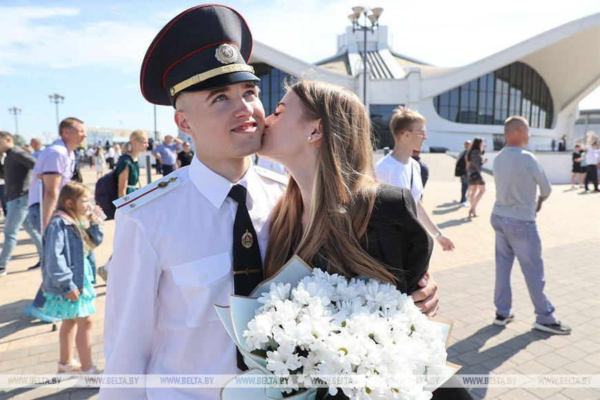 Среди выпускников этого года 37 курсантов получили дипломы с отличием, 12 из них удостоены золотой медали. Также это выпускники, включенные в республиканский банк данных одаренной молодежи, 6 начинающих исследователей, отмеченных специальным фондом Президента Республики Беларусь по социальной поддержке одаренных учащихся и студентов, и, конечно, продолжатели милицейских династий. Всего с четырех курсантских факультетов (милиции общественной безопасности, криминальной милиции, следственно-экспертного и уголовно-исполнительного) выпустились 359 новоиспеченных офицеров, которых поздравили руководство Совета безопасности Республики Беларусь, Министерства внутренних дел, милицейского вуза, различных государственных органов и ведомств, в интересах которых подготовлены специалисты. Молодые офицеры продолжат службу в Министерстве внутренних дел, Министерстве обороны, Следственном комитете, Государственном комитете судебных экспертиз, Департаменте финансовых расследований Комитете государственного контроля и Государственном пограничном комитете.-0-