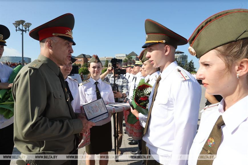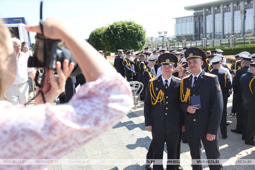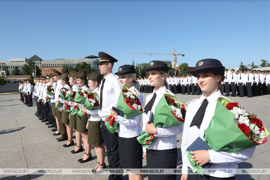 "Сегодня по всей стране много выпускников этого учебного заведения выполняют задачи, несут службу и пользуются авторитетом у народа. Это дорогого стоит. Думаю, вы пополните эти ряды и также будете способствовать выполнению сложнейших задач по обеспечению правопорядка и мира, соблюдению законности на территории страны, - добавил Александр Вольфович. - Самое главное - вы должны быть преданы своей стране и своему народу. А я уверен, что вы этими качествами обладаете: профессионализмом, преданностью, верой в то, что мы делаем. Я хочу пожелать всем крепчайшего здоровья, успехов, силы и воли, не останавливаться на том, чем вы сегодня обладаете, чему вас научили. Профессионализм требует постоянного самосовершенствования, самообучения, поэтому в своей жизни, службе надо находить время, чтобы поддерживать профессионализм на должном уровне. У вас все получится!"