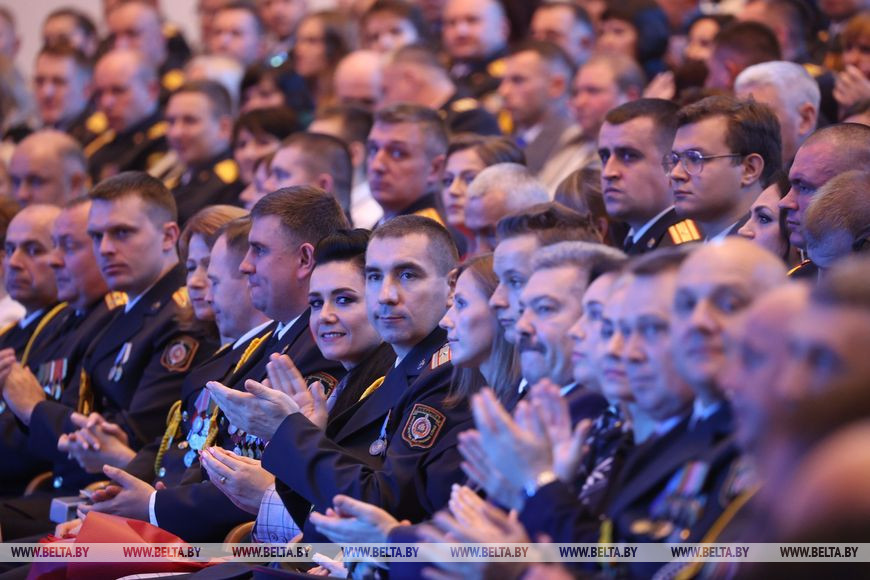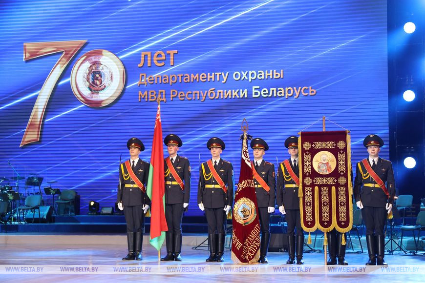 "Департамент охраны Министерства внутренних дел отмечает 70-летний юбилей. Благодаря слаженной работе коллектива, опыту, который достигнут работой ветеранов Департамента охраны, это структурное подразделение Министерства внутренних дел добилось высочайших результатов. Оно заняло достойную нишу в системе правоохранительного блока. Выполняя сложнейшие задачи по обеспечению безопасности грузов, людей, они тем самым защищают наши национальные интересы, обеспечивая национальную безопасность", - сказал Александр Вольфович.