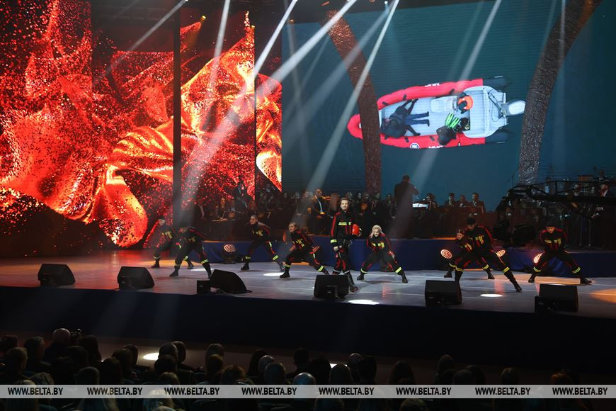 Продолжил программу концерт с участием звезд белорусской эстрады в сопровождении Президентского оркестра Республики Беларусь. Также для гостей праздничного мероприятия организована выставка современных и раритетных образцов пожарной аварийно-спасательной техники, научных разработок и спортивных достижений.-0-