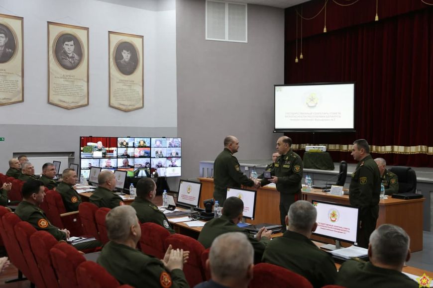 В начале мероприятия государственный секретарь Совета безопасности генерал-лейтенант Александр Вольфович вручил офицерам, добившимся высоких результатов в служебной деятельности, государственные награды и объявил благодарности от имени Президента Александра Лукашенко.