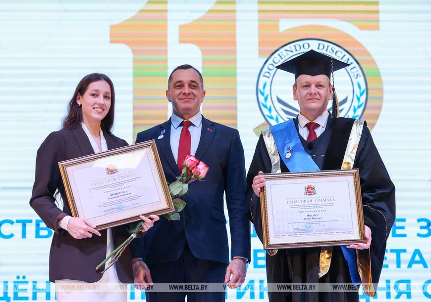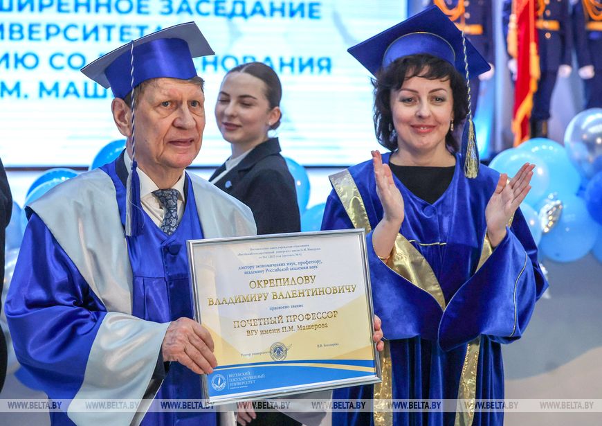 "В какой бы должности я не был, периодически здесь бываю и когда захожу в здание, у меня дрожь в коленках. Этот трепет и внутреннее волнение остаются. Адрес тот же, но совершенно другой вуз. Фойе, холлы, учебное пространство совершенно другие. Актовый зал во времена нашей молодости был достаточно скромным, а сейчас все такое комфортное, красивое. Но вот это волнение, что ты идешь в университет, будут преподаватели твои, постоянное ожидание зачетов, практических занятий, экзаменов, - это все невозможно выдавить. С одной стороны, это радость, ощущение молодости, гордости за свой вуз, а с другой - волнение, трепет, сумятица в голове. Я не могу объяснить откуда, как с этим бороться, но, честно говоря, ощущаешь себя намного моложе, и это потрясающее чувство, ради которого я сюда приезжаю", - от души поделился первый замглавы Администрации Президента.Владимир Перцов подчеркнул, что ВГУ сегодня занимает лидирующие позиции в сфере высшего образования и удерживает высокий рейтинг. "Здесь большое количество иностранных студентов. Так называемый показатель по экспорту услуг Витебский госуниверситет выполняет. Студенты различных стран учатся и, самое главное, чувствуют себя комфортно, как дома, получают образование, впитывают культуру, наш менталитет и навсегда останутся немножко патриотами нашей родной Беларуси, уехав на родину. Это будут наши послы, проводники наших идей и наши надежные партнеры в бизнесе, политических и гуманитарных связях. Вузу нелегко поддерживать такую высокую планку, поскольку конкуренция высокая в нашей стране. Она такова и в государствах вокруг нас, каждый сейчас сражается за молодого студента, чтобы эту образовательную услугу продать, привлечь к себе как можно больше иностранцев, продать им вместе с образовательной услугой идеологию, создать проводников своих идей. У нас нет этого, у нас люди из разных стран, разных национальностей, рас чувствуют себя вполне комфортно, не подвергаются никакой дискриминации. За это они и любят Беларусь и Витебский государственный университет в частности, потому что здесь можно учиться и жить комфортно, приезжать сюда после окончания университета через пять, десять лет даже для того, чтобы встретиться со своими одногруппниками. Знаю, что таких встреч достаточно много. В такой конкуренции Витебский госуниверситет не то что не проигрывает, а занимает лидирующие позиции в Республике Беларусь. Он второй после БГУ по общему зачету, это очень высокий показатель. Мы гордимся и сегодня отмечаем этот юбилей с такой высокой планкой. Желаем такие же высокие показатели каждый раз демонстрировать в соревновательных таблицах", - пожелал первый замглавы Администрации Президента.