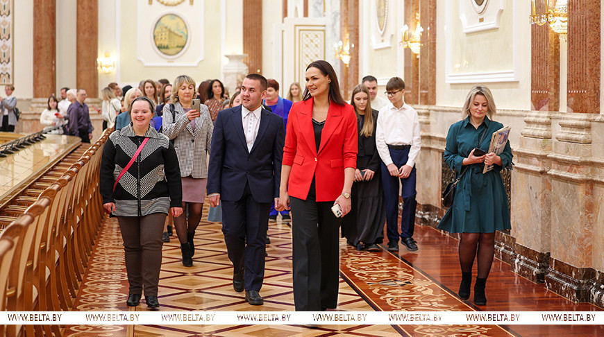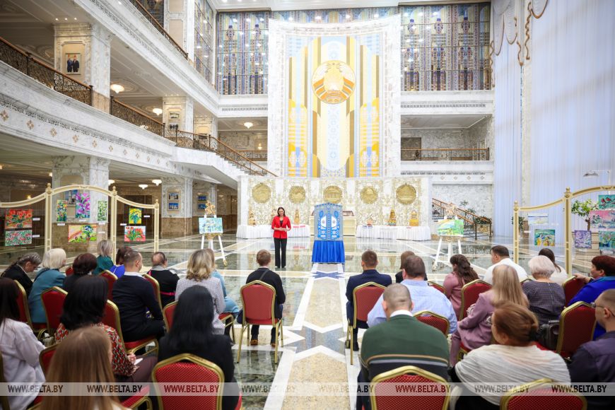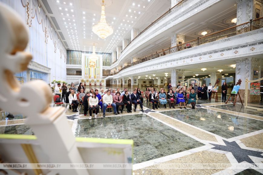 Гостей от имени главы государства приветствовала пресс-секретарь Президента Наталья Эйсмонт, которая отметила важность того, что данное мероприятие проходит на главной официальной площадке страны, где практически каждый день работает Александр Лукашенко. Сейчас в стране проводится Неделя родительской любви, которая широко освещается в белорусских СМИ, - это новая традиция, посвященная семье, родительской любви, взаимопомощи, родителям и детям. Дворец Независимости открыт как для маститых художников, так и молодых талантов, в том числе и с ограниченными возможностями. Символично, что именно в это время во Дворец Независимости со своей выставкой приехали молодые талантливые ребята из Солигорска вместе с родителями, воспитателями, педагогами, волонтерами.