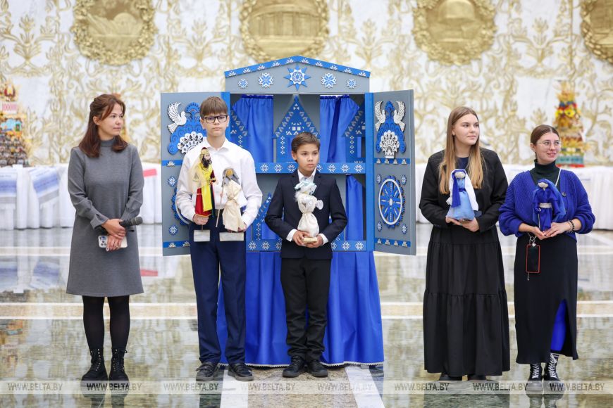 Гостей ждал еще один сюрприз - выступление батлеечного театра. Интересна его предыстория - ранее во время посещения Витебского госуниверситета имени П.М.Машерова студенты встретили Президента постановкой кукольного театра "Батлейка". Глава государства тогда оценил оригинальное приветствие и поручил продумать, чтобы такое мини-представление для гостей можно было организовать во Дворце Независимости.
