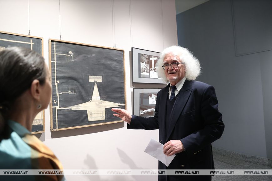 На выставке представлены также два планшета с конкурсными эскизами 1966 года, которые архитекторы Градов, Занкович, Левин представили на конкурс по созданию мемориала в Хатыни. "Для меня большая честь в стенах Национального художественного музея в эти особые дни памяти о хатынской трагедии представить работы, которые три молодых архитектора - Градов, Занкович, Левин - в 1966 году создавали в помещениях на Круглой площади. С того момента эти работы впервые покинули это историческое место - архитектурную мастерскую. Столько лет прошло", - заметила архитектор, директор Творческой мастерской архитектора Л.Левина Галина Левина.