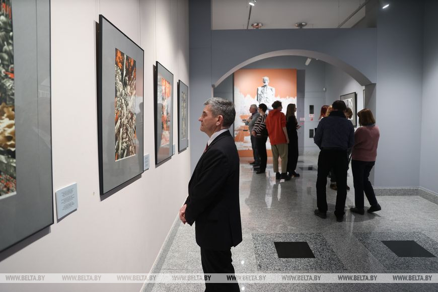 "Наш музей, как и многие учреждения культуры, отдает дань уважения жертвам спаленных деревень - не только Хатыни, но и других, кто погиб безвинно", - сказал директор НХМ Владимир Прокопцов, открывая выставку. Он отметил, что в экспозицию вошли как материалы Национального художественного музея (произведения народного художника Беларуси Василия Шаранговича, зарисовки суровых военных будней художника-фронтовика Бориса Малкина и др.), так и частных собраний.