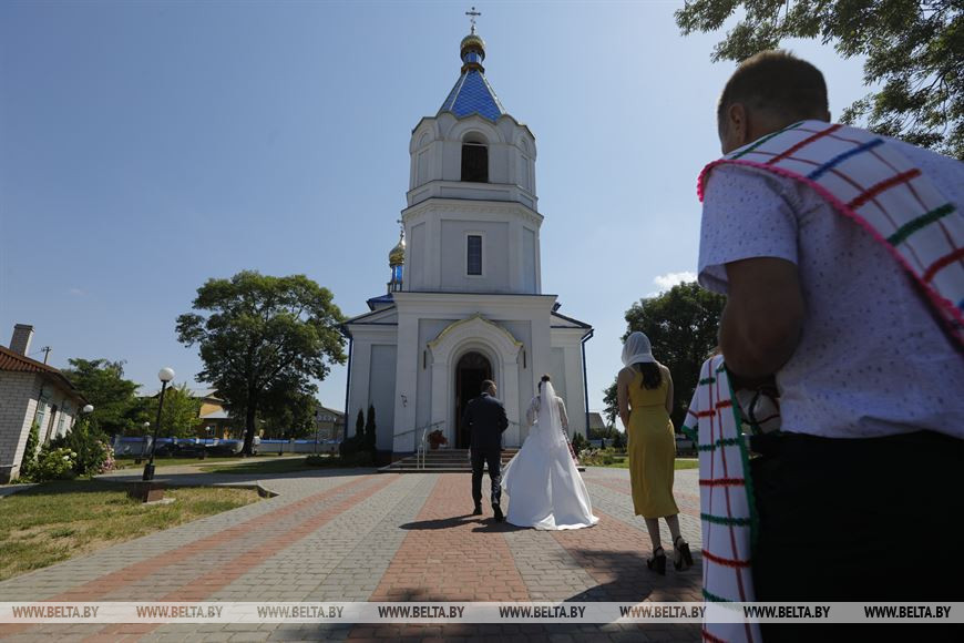 Возвращаемся с полей. Едем по агрогородку и отмечаем: мотоляне умеют и работать, и отдыхать. В центре оборудована детская площадка. Рядом строится летнее кафе. Оборудованы две зоны отдыха - на озере Заозерском (в Мотоле) и озере Мульном (за Тышковичами). Есть библиотека, Дом культуры. Лет 5 назад была отреставрирована церковь. Немало семей образовалось с благословения местного священника. Одну из них скрепили узами брака при нас.