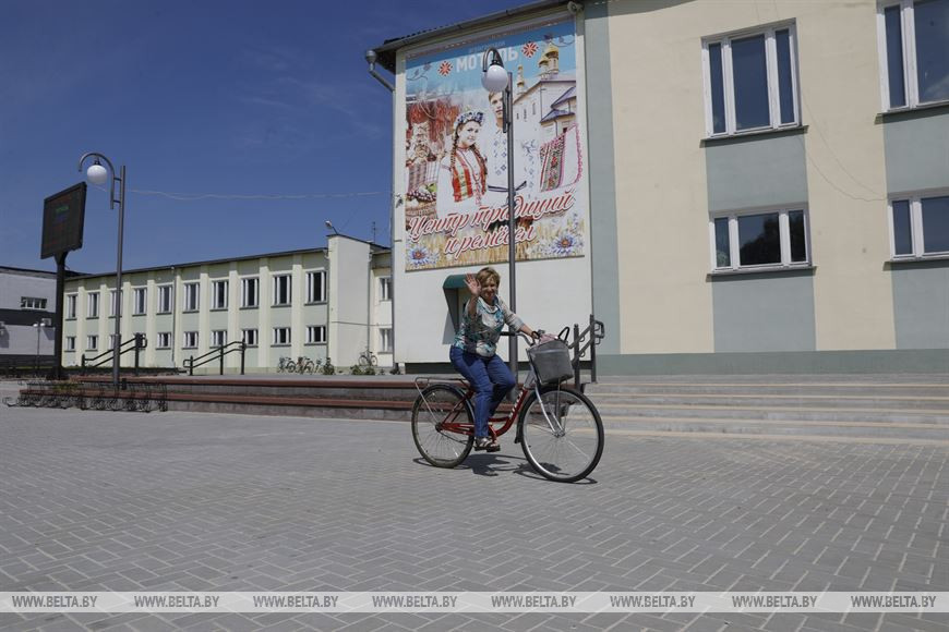 "Ремонт площади завершился в июне, - рассказывает глава сельисполкома. - Заменены системы канализации и водоснабжения, плиточное покрытие. Сделано огромное крыльцо-сцена перед входом в Дом культуры, установлено новое освещение, разбиты клумбы, предусмотрена безбарьерная среда. Оборудованы две большие стоянки транспорта". Дальше планируется установить малые архитектурные формы и посадить многолетние насаждения (кустарники разного яруса, ели, можжевельники, возле скамеек - декоративные яблони). Появятся необычные скамейки с изображениями старого Мотоля на спинках. Со стороны дороги площадь будет ограждена живой изгородью. Плюс запланировано благоустройство пешеходного бульвара.