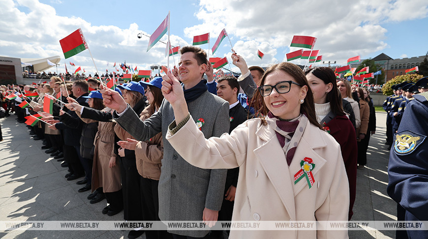 Символы - это великая вещь, продолжил он. "Они способны как разъединять, так и объединять людей, в том числе граждан Республики Беларусь. Наш гимн - очень мелодичный, наша родная беларуская мова - яна прыгажэйшая. Когда люди слышат исполнение гимна, они стремятся быть вместе, они стремятся к единству. Очень важно, что буквально несколько последних лет важным дополнением праздника флага и герба стал еще и праздник нашего государственного гимна. Белорусы буквально за 10 лет полюбили бутоньерки, яблоневый цвет, красно-зеленую ленточку - это неотъемлемый атрибут каждого государственного праздника", - сказал первый секретарь ЦК БРСМ.