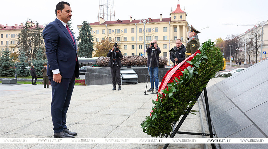 21 октября, Минск /Корр. БЕЛТА/. Заместитель главнокомандующего Ливийской национальной армией генерал-полковник Саддам Халифа Хафтар возложил венок к монументу на площади Победы в Минске и почтил память героев, вставших на защиту Родины от немецко-фашистских захватчиков.-0-