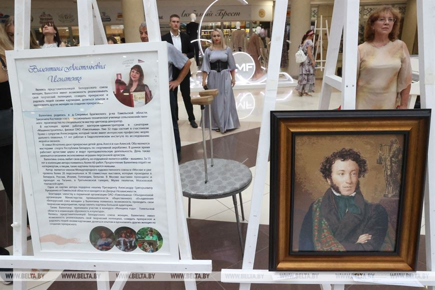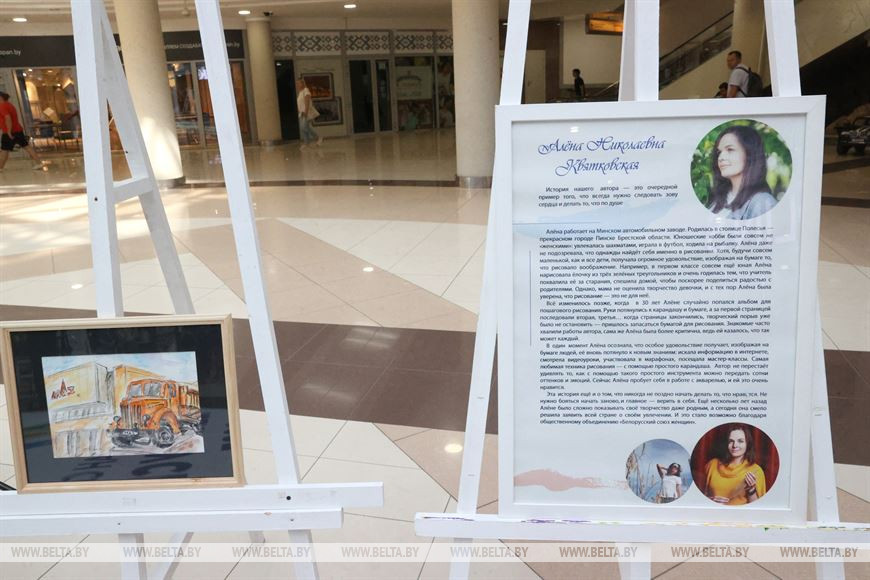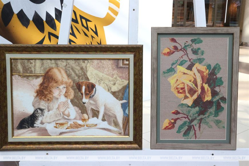 11 августа, Минск /Корр. БЕЛТА/. Мастер вышивки крестиком Валентина Игнатенко и любительница рисовать портреты карандашом и акварелью Алена Квятковская представили свои работы на выставке "Ее рук дело", инициированной Белорусским союзом женщин, в торговом центре "Столица" в Минске, передает корреспондент БЕЛТА.