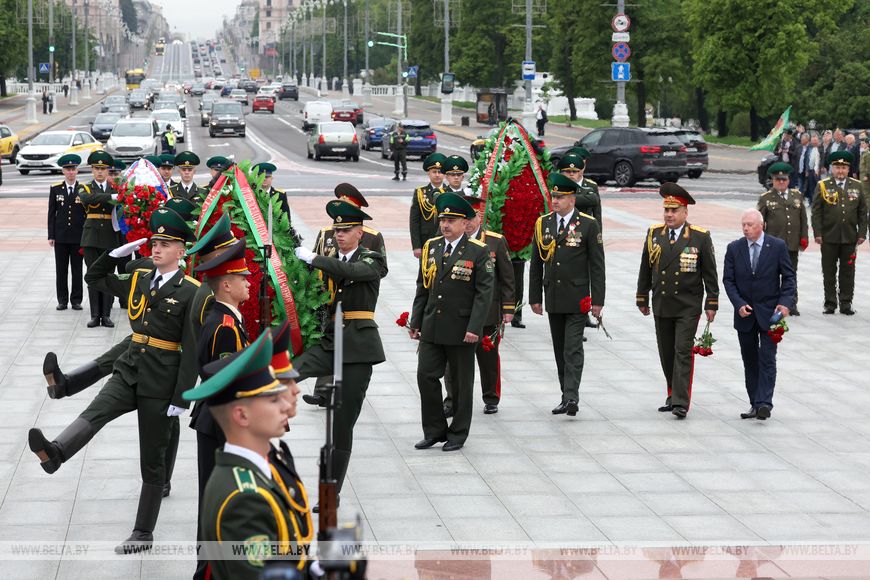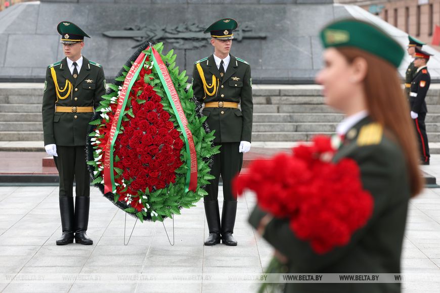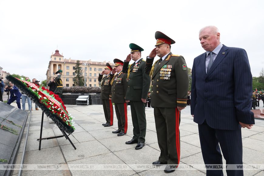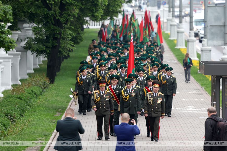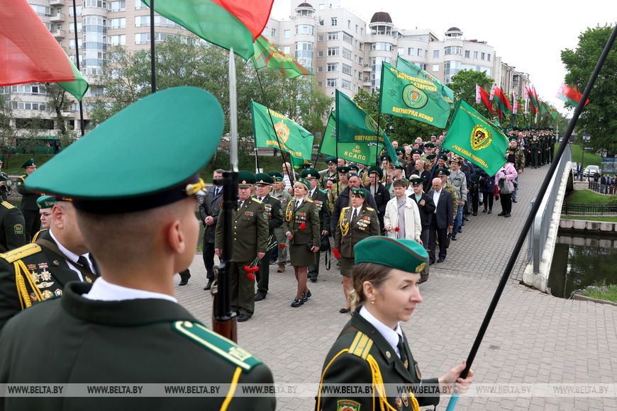 Пешая колонна далее направилась к Острову Мужества и Скорби, где пограничники возложили венки в память о тех, кто выполнял интернациональный долг в Афганистане.