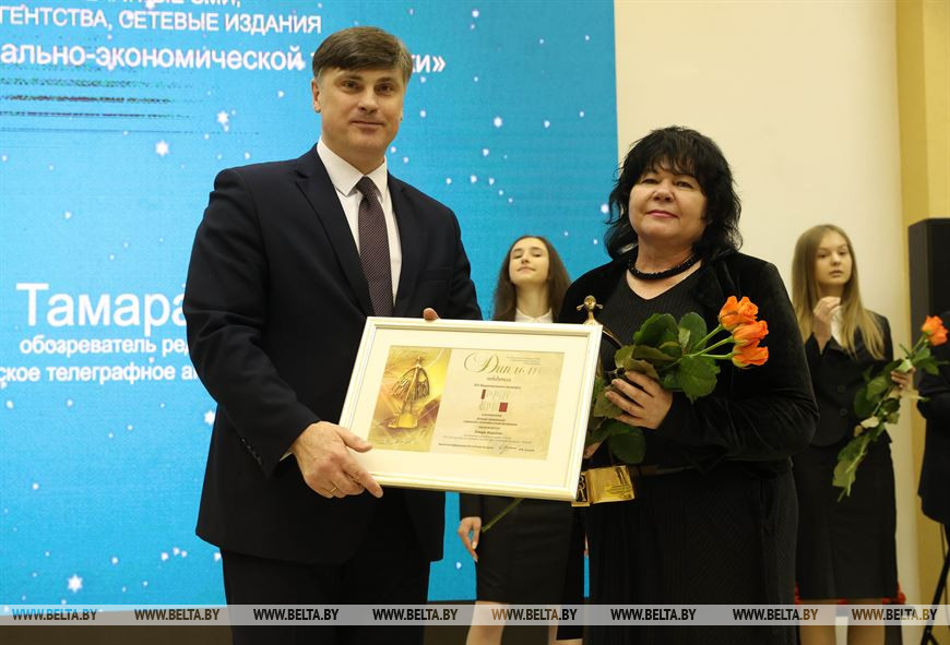 Победителем конкурса "Золотая Литера" в номинации "Лучшие материалы социально-экономической тематики" стала обозреватель редакции газеты "7 дней" УП "БЕЛТА" Тамара Маркина.