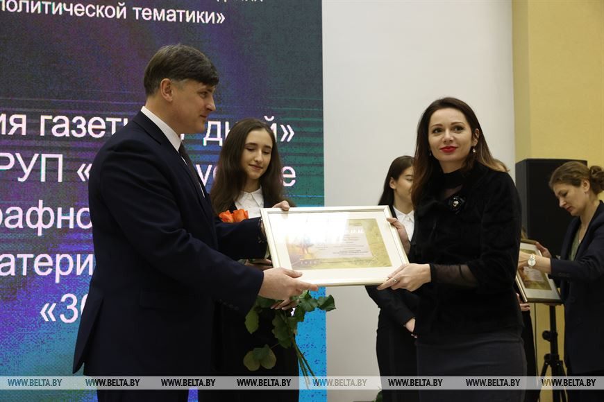 Первый заместитель министра информации Павел Легкий вручил победителям и лауреатам заслуженные награды. "Конкурс проведен в 16-й раз. На рассмотрение было представлено почти четыре сотни работ, и это немало. Количество заявок ежегодно увеличивается. Практически во всех номинациях мы наблюдали очень высокий уровень, свидетельствующий о профессионализме, творческой зрелости, ярких талантах в нашей журналистской среде", - отметил Павел Легкий.