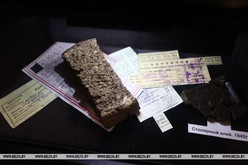 Все продукты и товары жителям города выдавались по карточкам. Нормы выдачи хлеба постоянно снижались. Так, на ноябрь 1941 года норма составила 250 г, но затем и она была снижена до 125 г. "В экспозиции нашего музея есть аналог куска ленинградского хлеба, изготовленного по третьей рецептуре. В ней было 60% муки, в последней, пятой, ее содержалось всего 6%, - отметила Анна Загребнева. - Голод привел к смерти более миллиона человек".В ноябре 1941 года Ладожское озеро сковал лед. Снабжение Ленинграда было продолжено автомобильным транспортом. Так появилась "Дорога жизни", по которой грузовики везли спасительные грузы в город. Работа трассы продолжалась вплоть до конца апреля 1942 года. Последние машины прошли по Ладоге при толщине льда всего 10 см.