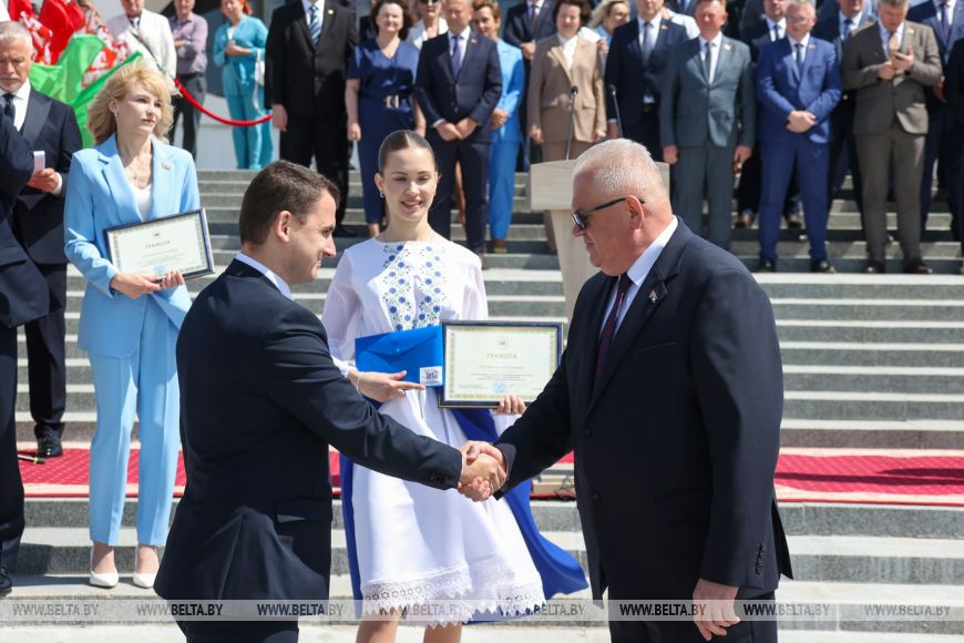 Роман Головченко считает символичным, что дипломы вручены накануне Дня Независимости Беларуси. "Это главный праздник нашей государственности, символ единства и памяти. Праздник, который вдохновляет на новые свершения", - сказал он.