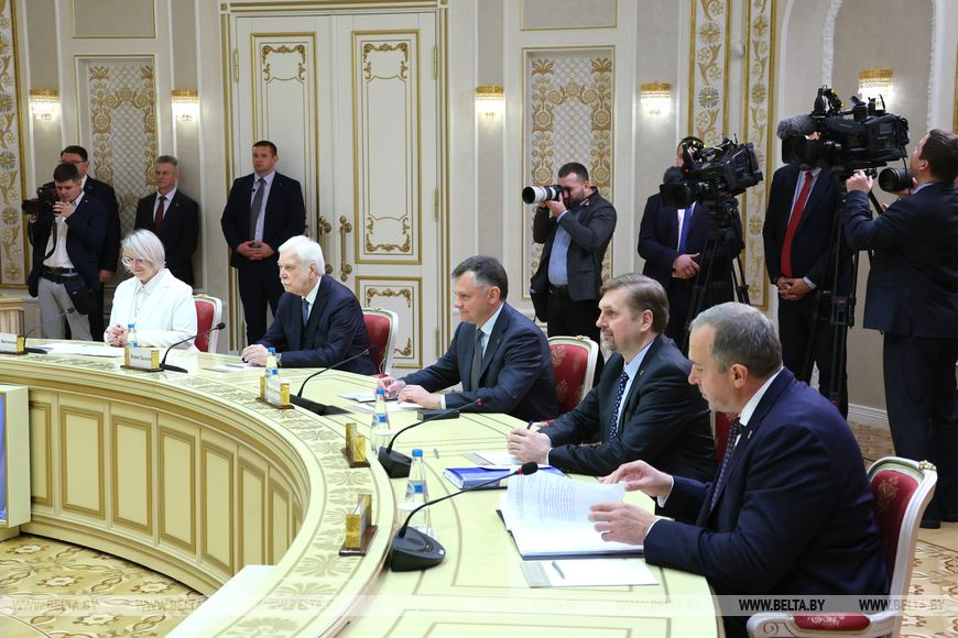 Президент в этой связи подчеркнул важность сохранения и развития взаимоотношений двух стран, особенно в нынешних непростых условиях: "Давление извне колоссальное. Не называю адреса, пароли, явки. Вы это хорошо знаете. Поэтому нам надо удержать свое. Беларусь и Россия были вместе и будут. Никто не сможет разорвать наше единство, как бы кому-то ни хотелось. Этого не позволят люди, народы".