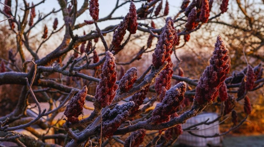 • Уксусное дерево (сумах). Очень агрессивное растение, которое быстро распространяется за счет корневищ. При отсутствии своевременной обработки может заполонить весь участок за несколько лет. Зато оно эффективно укрепляет склоны и предотвращает эрозию почвы.