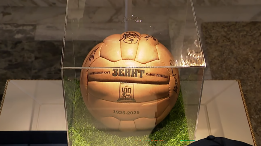 Но и это еще не все. Были и презенты, связанные со столетием футбольного клуба "Зенит" из Питера: кепка, футбольный мяч, значки. "Как это научиться в футбол играть, как вы играете?" - спросил у губернатора Президент. "Нам нужно научиться у вас в хоккей играть", - парировал Александр Беглов.