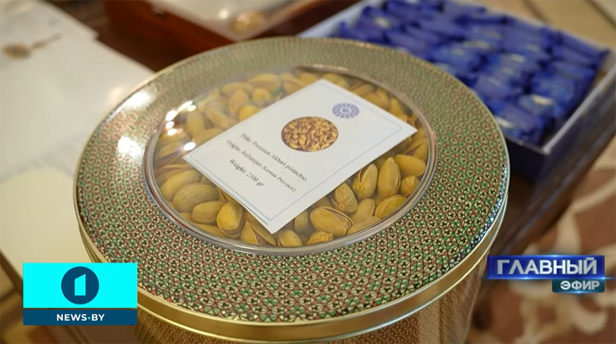 В свою очередь Масуд Пезешкиан подарил Александру Лукашенко чайный набор, иранские пряности и знаменитые на весь мир иранские фисташки.-0-