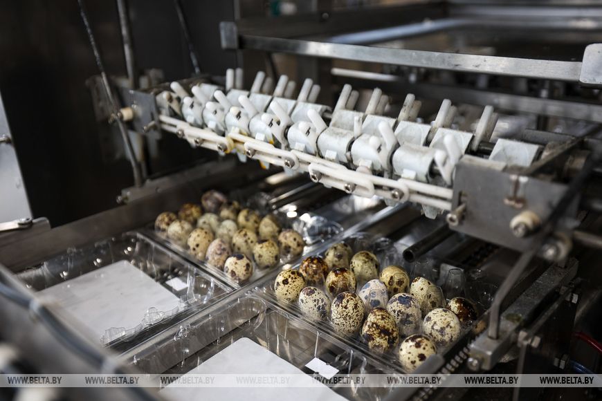 Производство для Беларуси уникальное - весь процесс, вплоть до упаковки товара, осуществляется практически без участия человека. Главная цель - не сэкономить на рабочей силе, но повысить производительность и минимизировать вероятность занесения инфекций. Птицы - весьма нежные создания. Даже небольшой стресс может сказаться на яйценоскости, а значит, и ударить по карману производителя. Поэтому большая часть из сопровождавших Александра Лукашенко, включая журналистов, самих перепелов увидела разве что в виде подарка главе государства - в просторной клетке семь "девочек" и два "мальчика" отправились в президентское хозяйство.