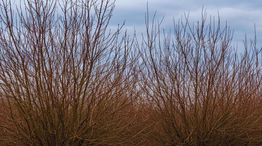 2. Поздний – приблизительно в конце октября – начале ноября, когда температура суточного режима снижается ниже нуля, а днем держится в пределах +1…+5 °C. Этот метод проводится по голым ветвям и считается более щадящим, так как растения уже находятся в состоянии покоя, и риск повреждения почек минимален.